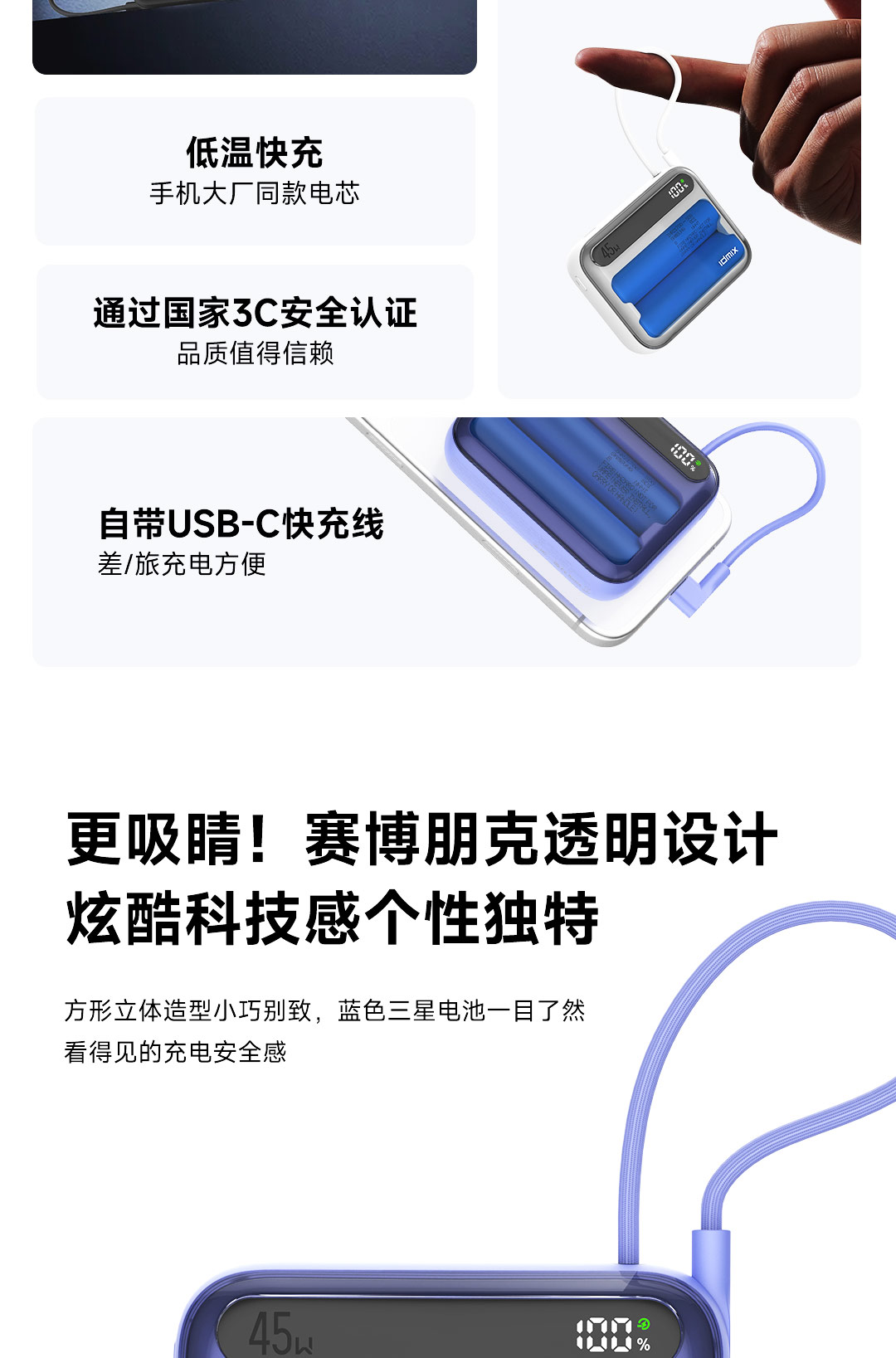 输入(USB-C/USB-C线):5V-3A,9V-2.22A,12V-1.67A,15V-1.34A