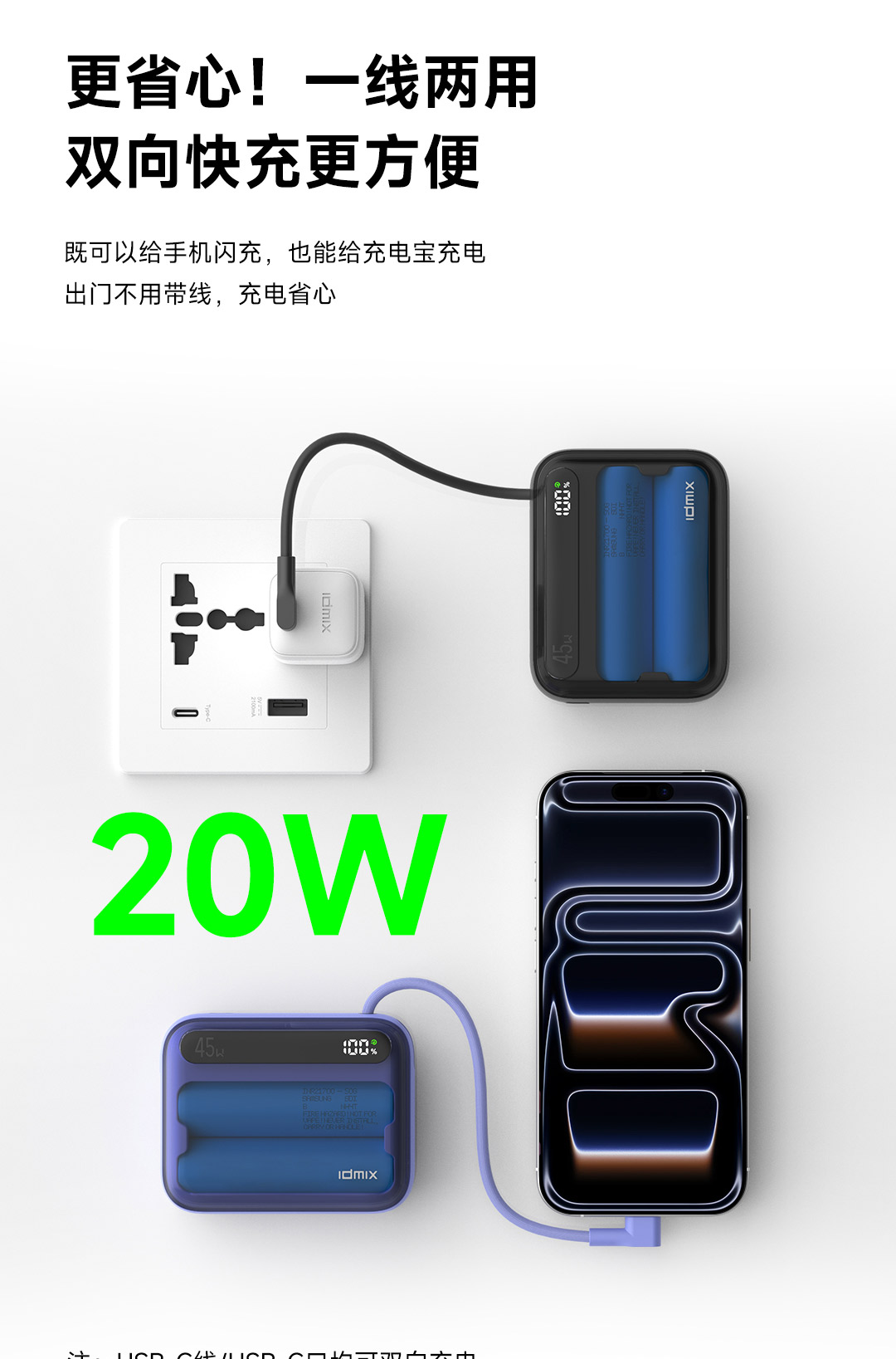 输出(USB-C/USB-C线):5V-3A,9V-3A,12V-3A,15V-3A,20V--2.25A