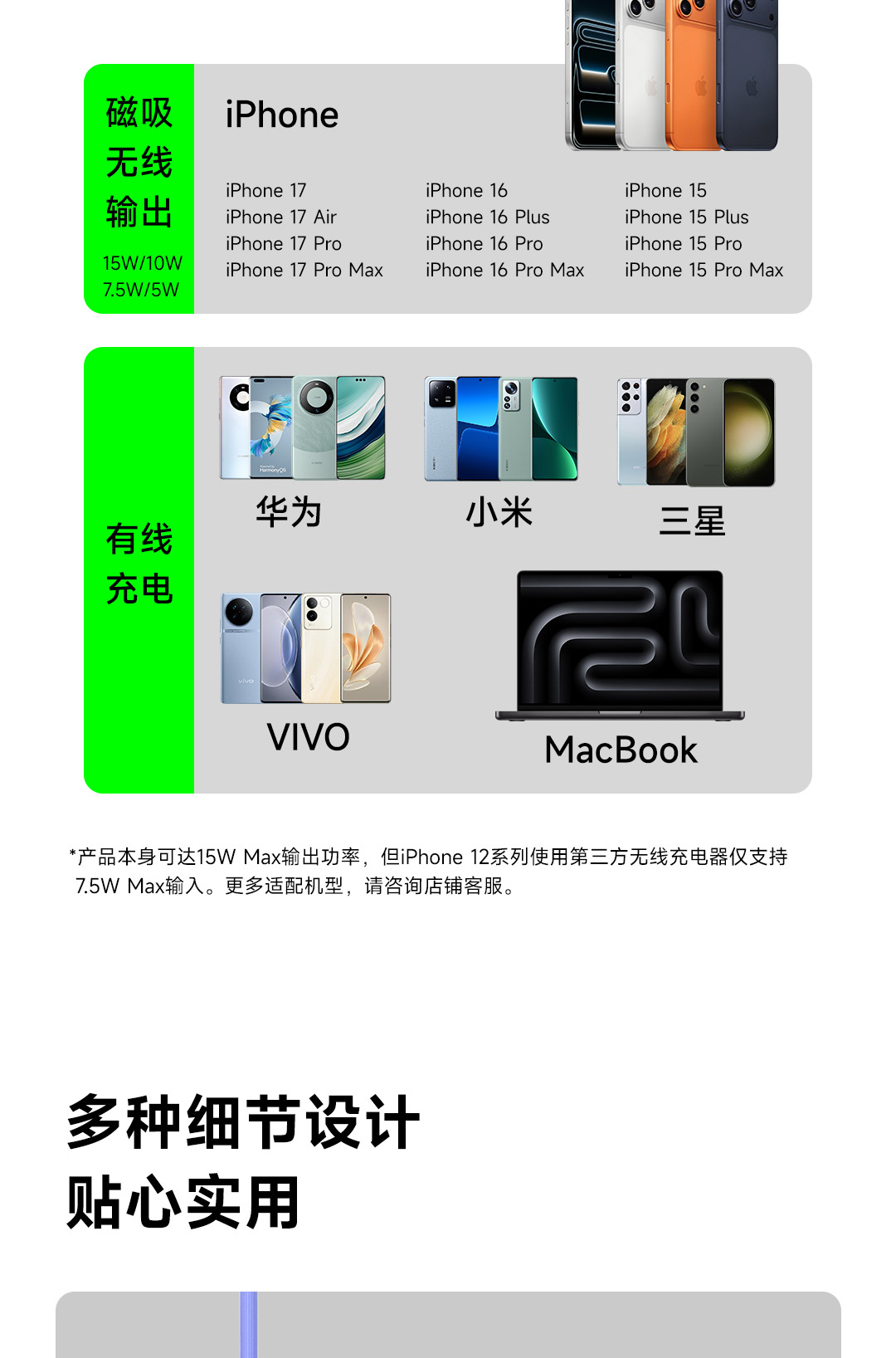 输出(无线充):15W/10W/7.5W/5W