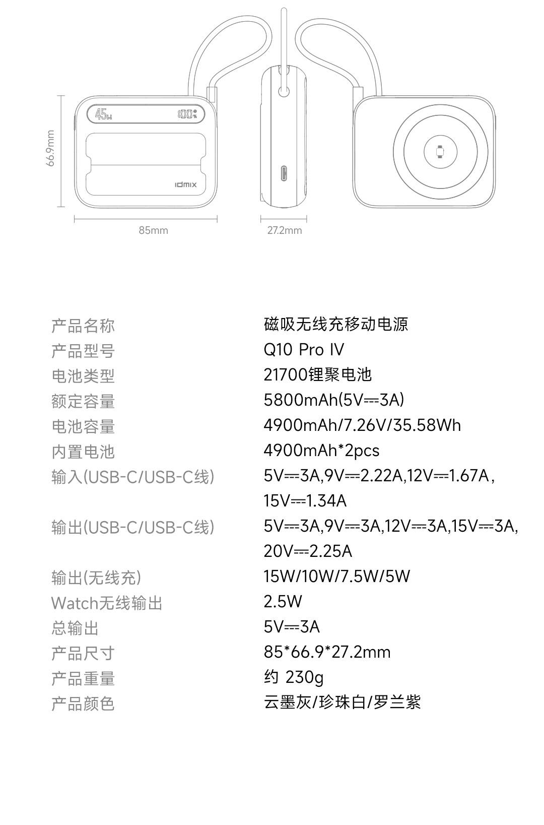 产品名称:磁吸无线充移动电源
