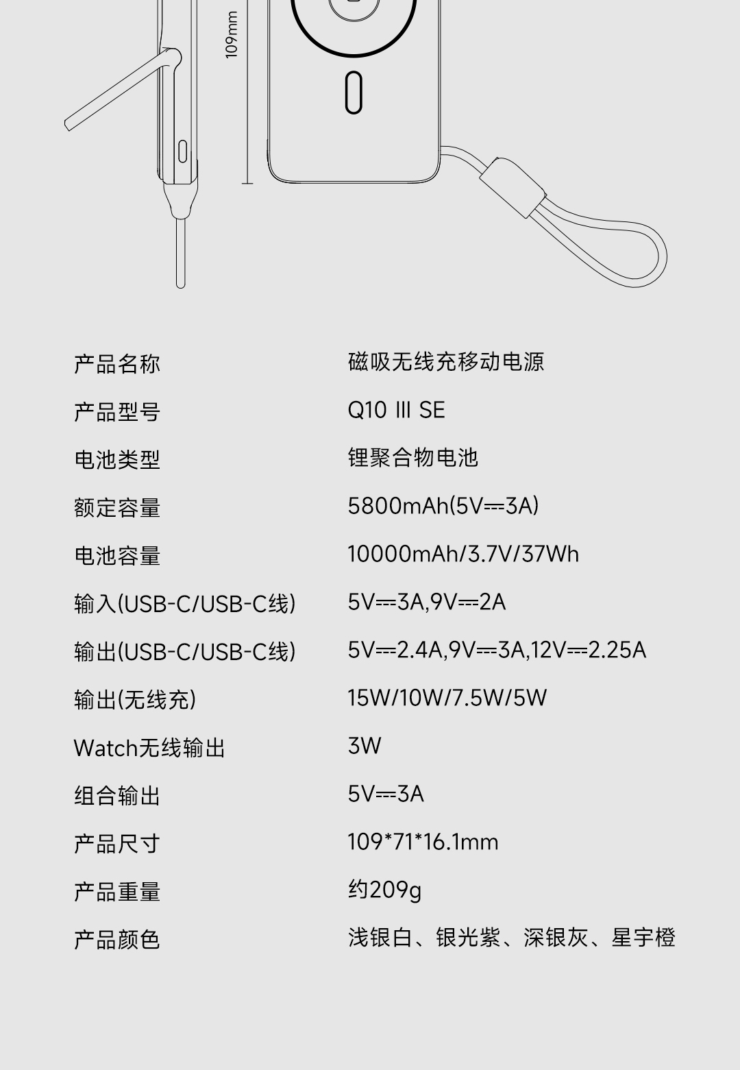 输入(USB-C/USB-C线):5V-3A,9V-2A