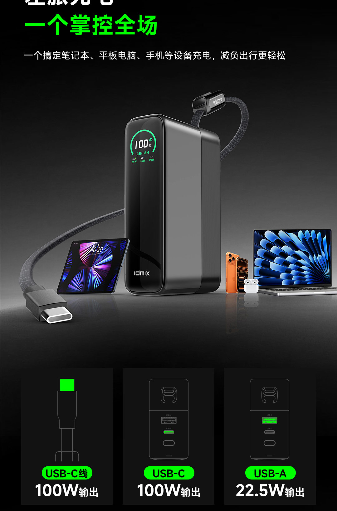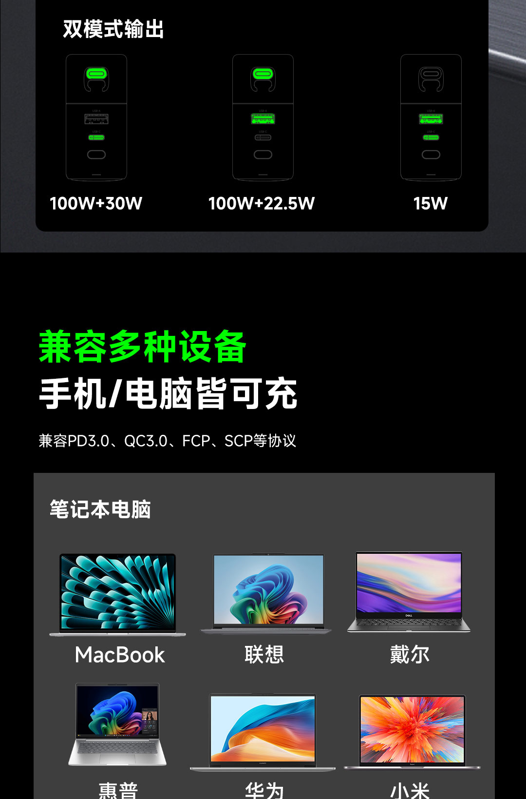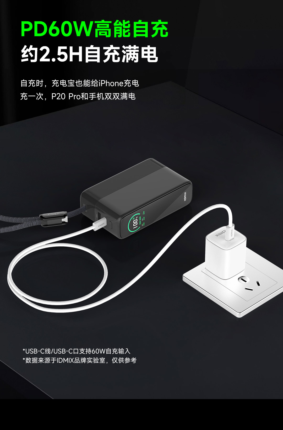输出(USB-C/USB-C线):5V-3A,9V-3A,12V-3A,15V-3A,20V-5A