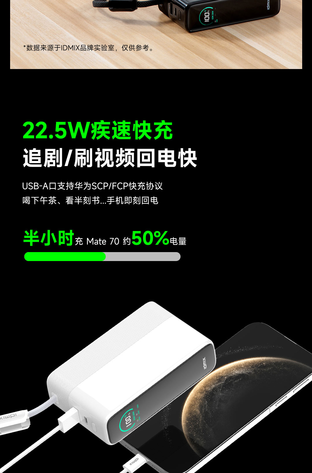 输出(USB-A):5V-3A,9V-2A,10V-2.25A,12V-1.5A